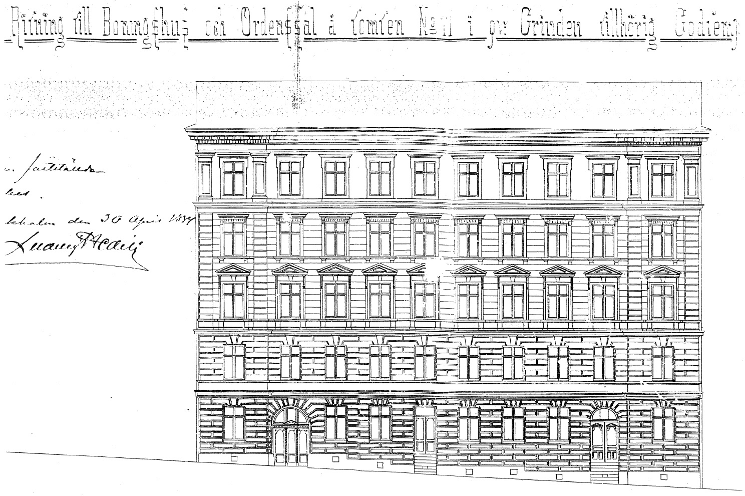 Ett fotografi funnet i arkivet hos Stadsmuséet, taget på gathusets fasad mot Kronobergsparken, visar hur huset såg ut år 1899, endast 15 år gammalt.